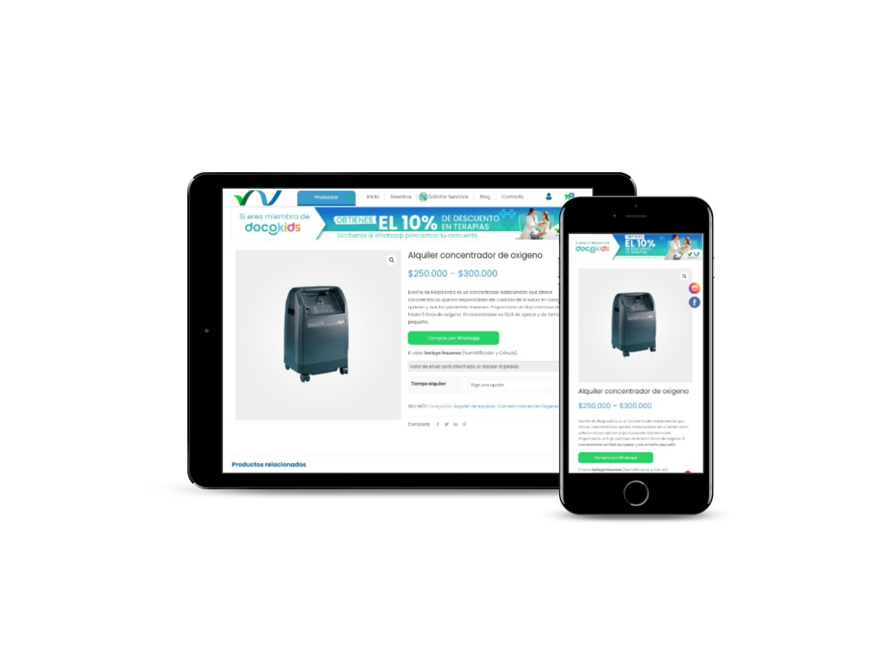 Portal E-commerce escalable, seguro, flexible; para la venta y alquiler de dispositivos médicos y módulo para agendamiento de citas. Creado con WordPress / Woocommerce, diseño personalizado, fácil de usar y optimizado para dispositivos móviles.