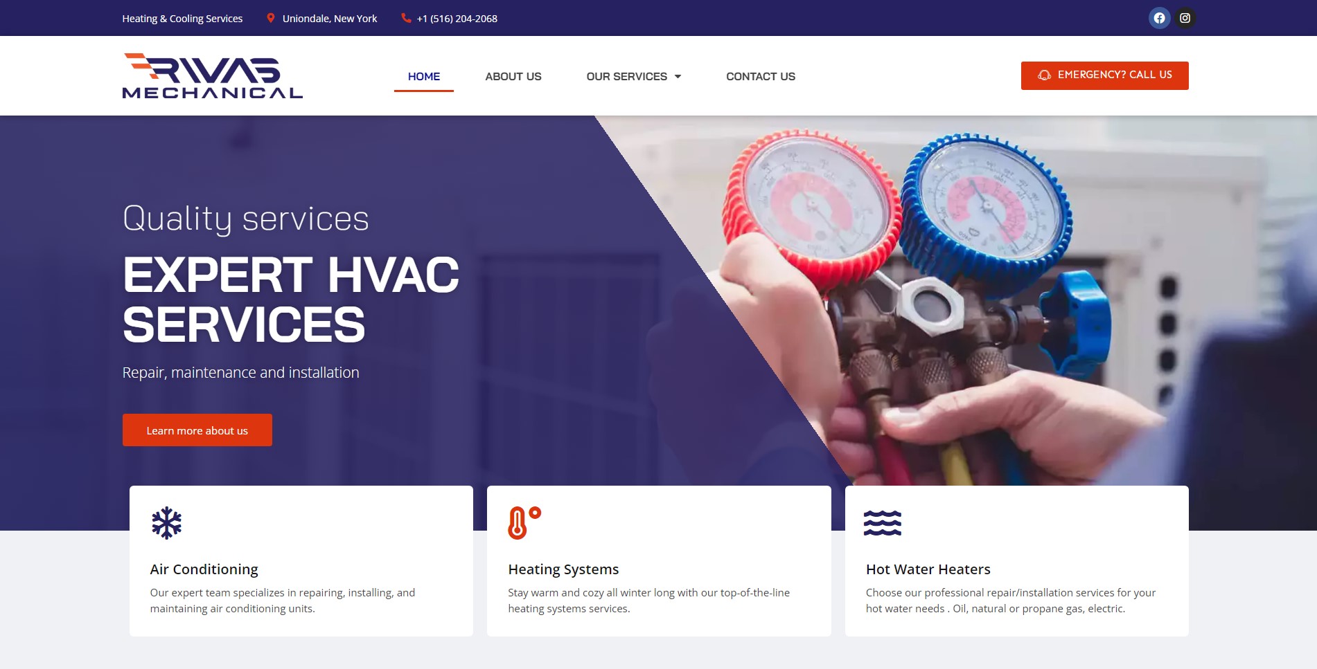Sitio web comercial para la empresa Rivas Mechanical ubicada en Miami – Estados Unidos. Interfaz intuitiva responsive con optimización de recursos y contenido para un alto rendimiento en velocidad y posicionamiento SEO.